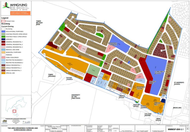 Today the neighbourhood includes a mall, two shopping centers, two fuel stations, student accommodation as well as several business parks towards the south. With more development and bus routes still being planned by the Mangaung Metro Municipality, Brandwag is still growing with its roughly 8000 residents.